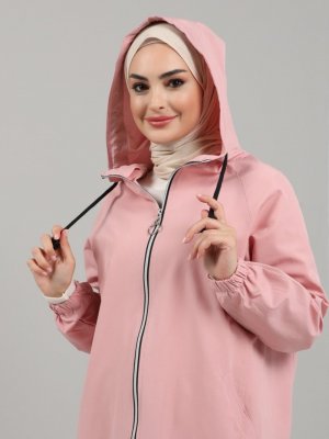 Tavin Pudra Kol Ucu Lastikli Kapüşonlu Fermuarlı Mont
