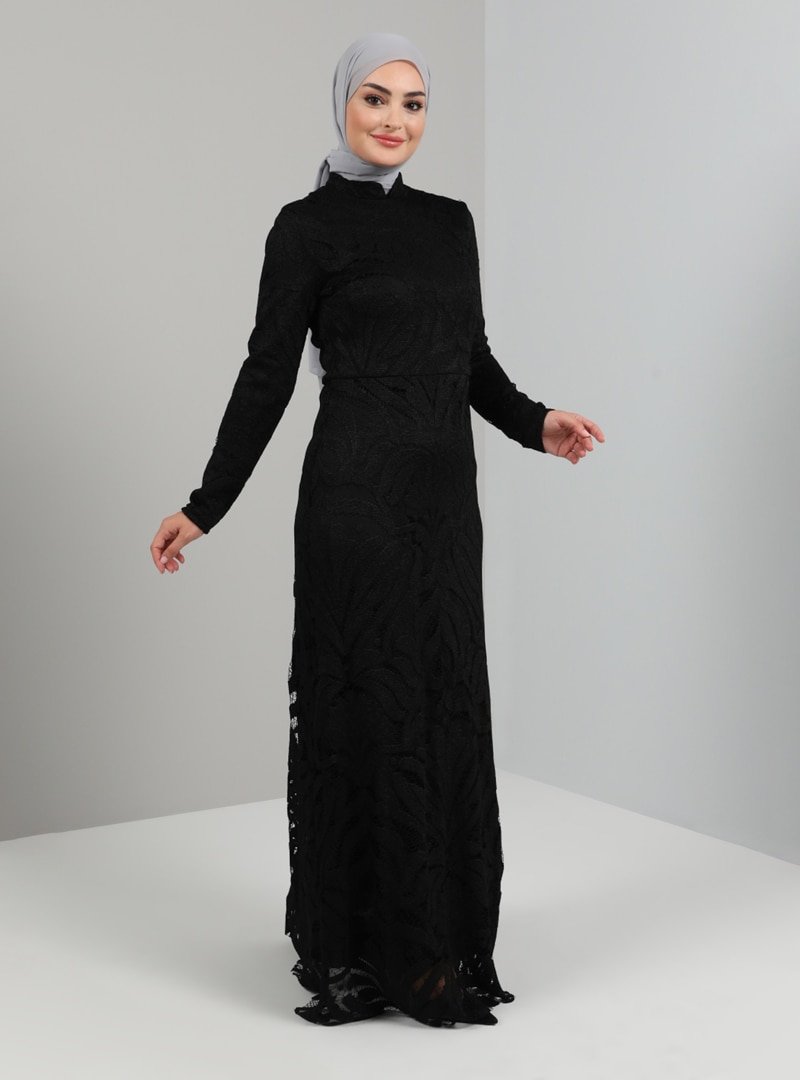 Tavin Siyah Hakim Yaka Payetli Abiye Elbise