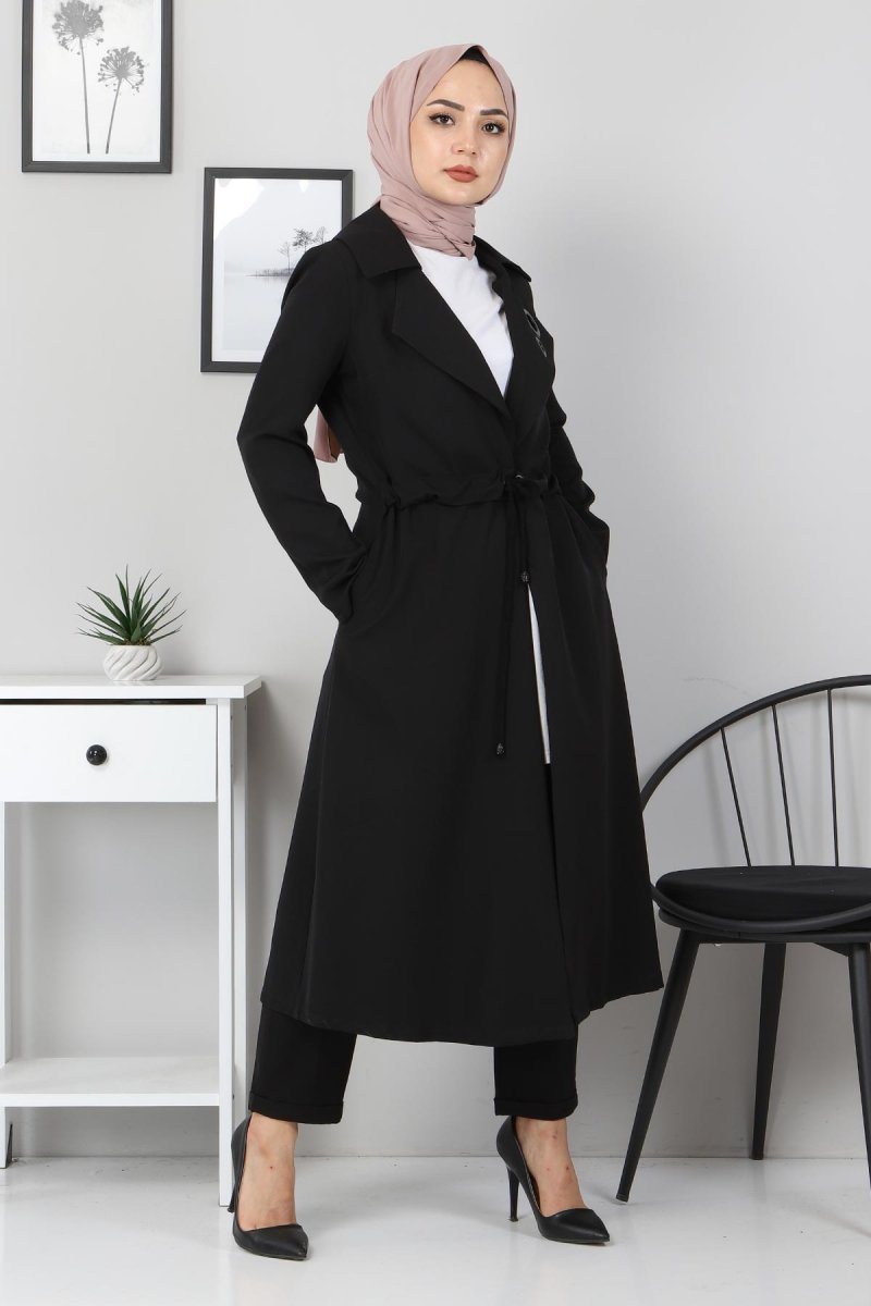 MISSVALLE Siyah Kuşgözü Detaylı Kap