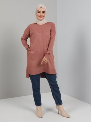 Tavin Soğan Kabuğu Cep Detaylı Yırtmaçlı Triko Tunik
