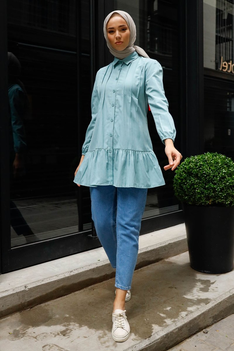 In Style Mint Robalı Fırfırlı Gömlek