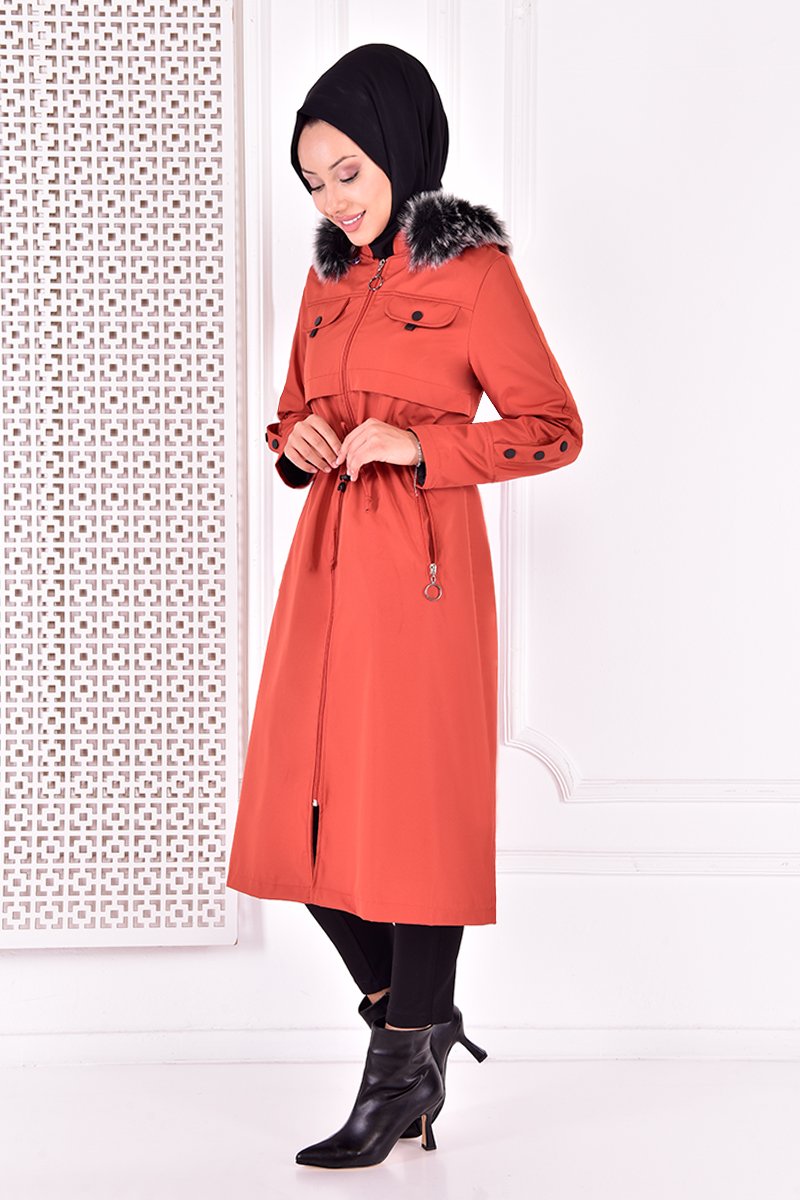 Moda Merve Fermuarlı Kaban Turuncu