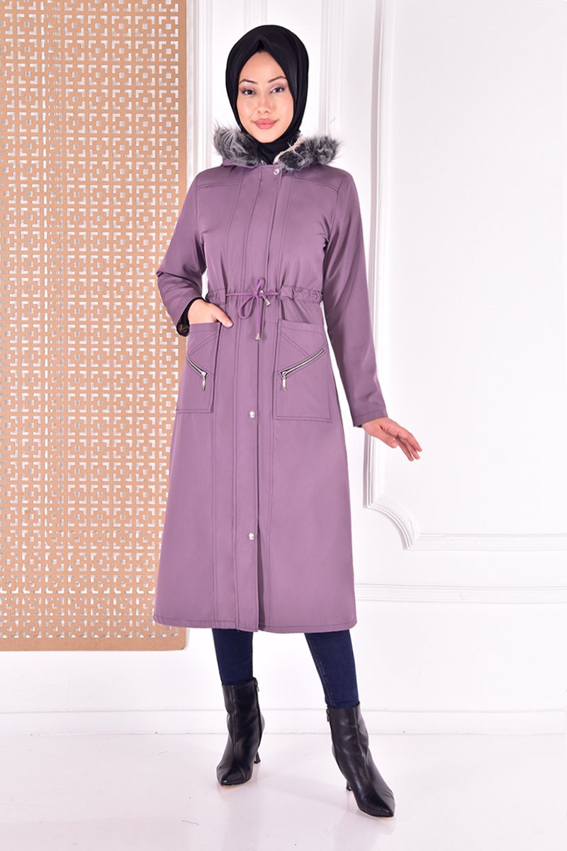 Moda Merve Kapüşonlu Kaban Lila