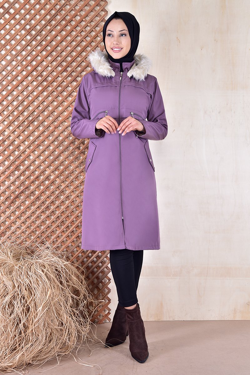 Moda Merve Kapüşonlu Kaban Lila