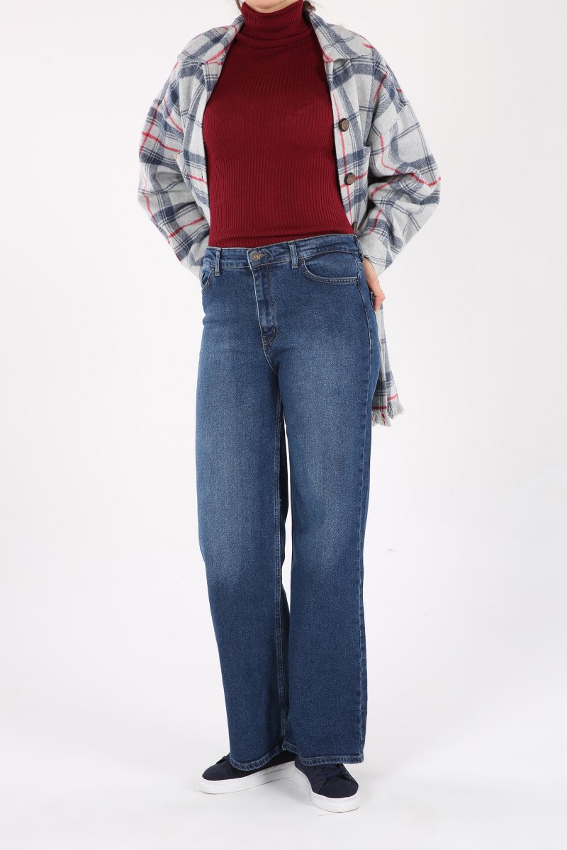 Allday Mavi Pamuklu Bol Paça Denim Kot Pantolon