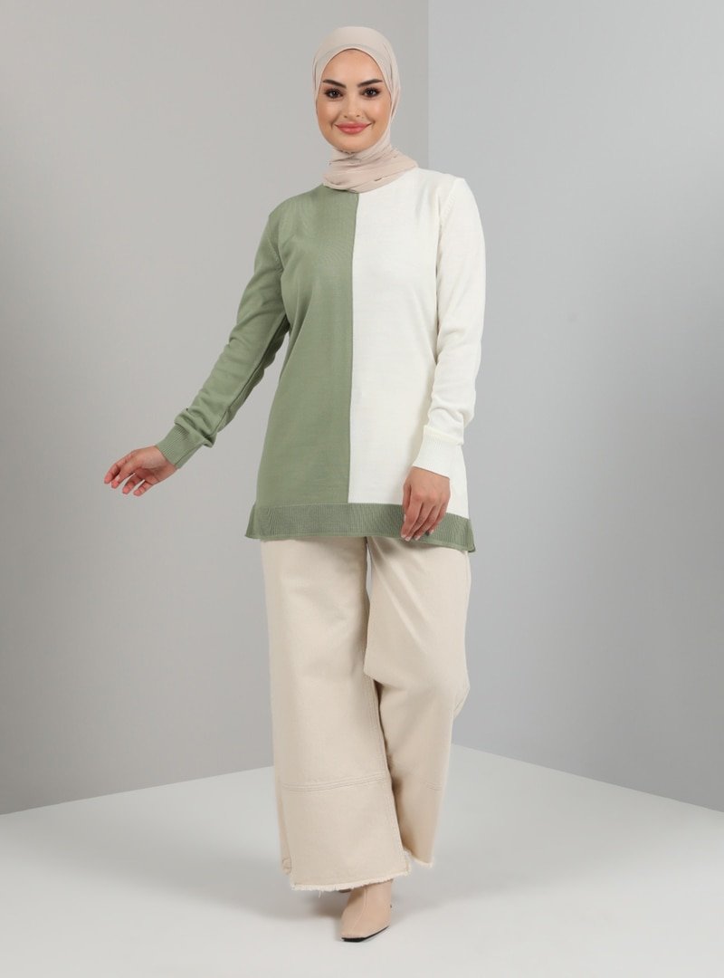 Tavin Çağla Color Blok Bisiklet Yaka Triko Tunik