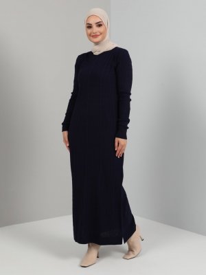 Tavin Lacivert Bisiklet Yaka Örgü Triko Elbise