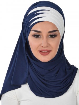 Ayşe Türban Tasarım Lacivert Krem İki Renkli Pratik Penye Şal