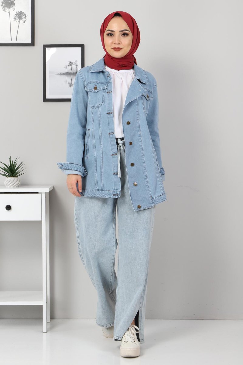 Tesettür Dünyası Çakım Düğmeli Kot Ceket Açık Mavi