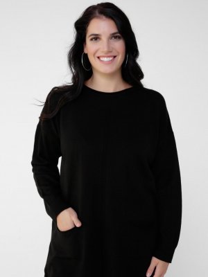 Alia Siyah Büyük Beden Cep Detaylı Triko Tunik