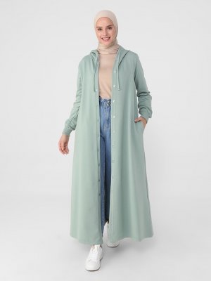 Benin Soğuk Yeşil Kapüşon Detaylı Çıtçıtlı Spor Pardesü