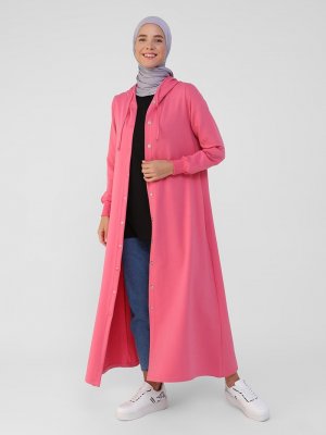 Benin Koyu Pembe Kapüşon Detaylı Çıtçıtlı Spor Pardesü