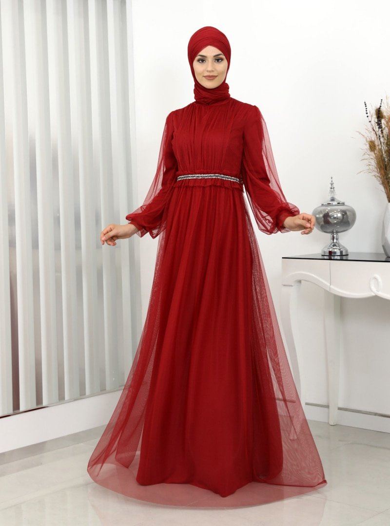 Surikka Kırmızı Revza Abiye Elbise