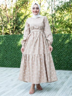 Sevit-Li Vizon Çiçek Desenli Elbise