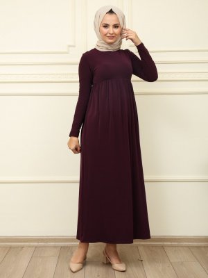 Moda Dua Mürdüm Beli Büzgülü Elbise