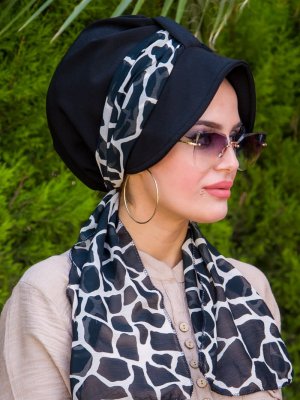 AİŞE TESETTÜR Siyah Desenli Hazır Türban
