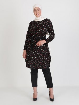 GELİNCE Siyah Bordo Desenli Tunik