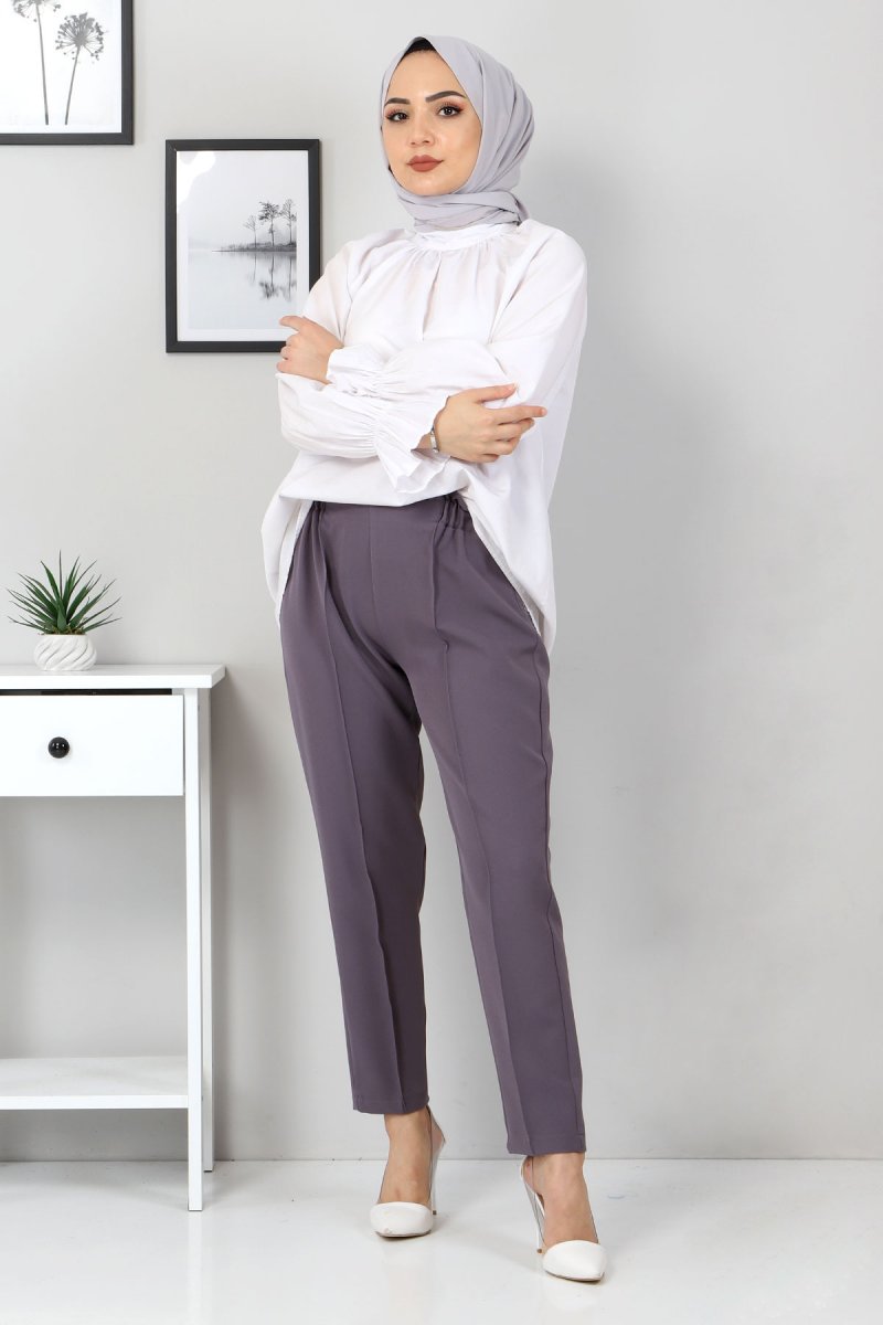 Tesettür Dünyası Antrasit Beli Lastikli Pantolon