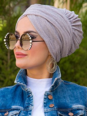 AİŞE TESETTÜR Gri Piliseli Dolama Bone Şal