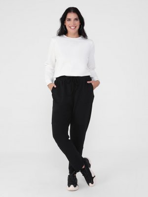 Alia Siyah Büyük Beden Beli Bağcıklı Cepli Pantolon