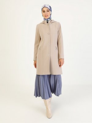 Olcay Bej Kapüşonlu Çıtçıt Detaylı Kaban