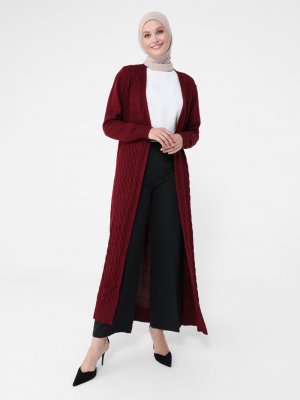 Refka Bordo Saç Örgülü Triko Hırka