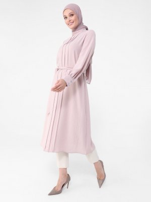 Refka Derin Pembe Taş Düğmeli Kuşaklı Tunik