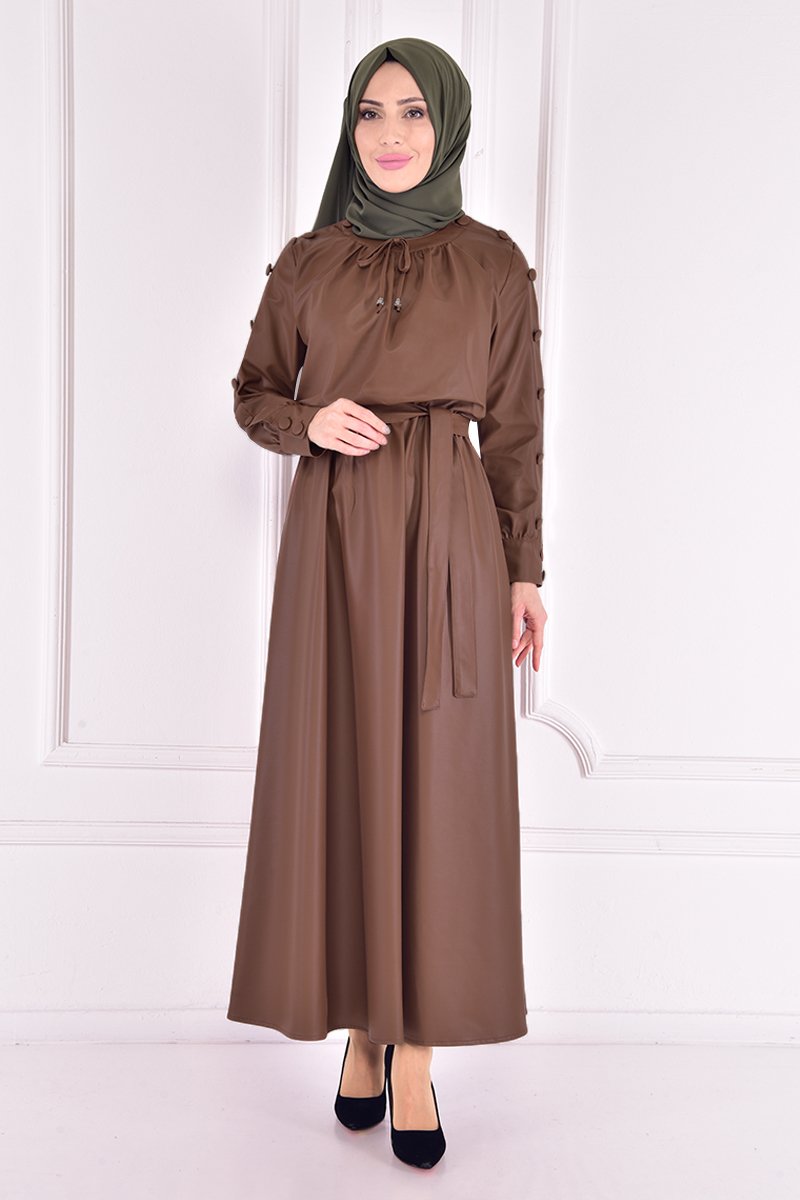 Moda Merve Taba Deri Elbise