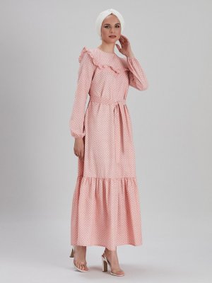 EBRAR Bebeksi Pembe Puantiye Desenli Elbise