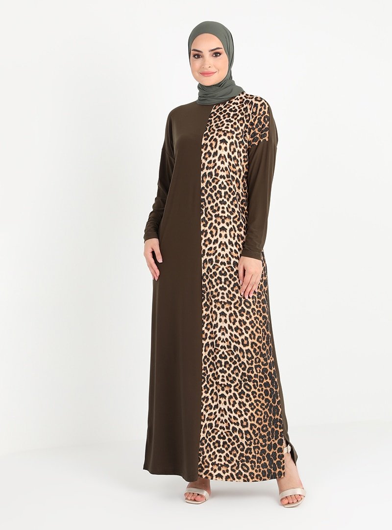Tavin Haki Leopar Desenli Elbise