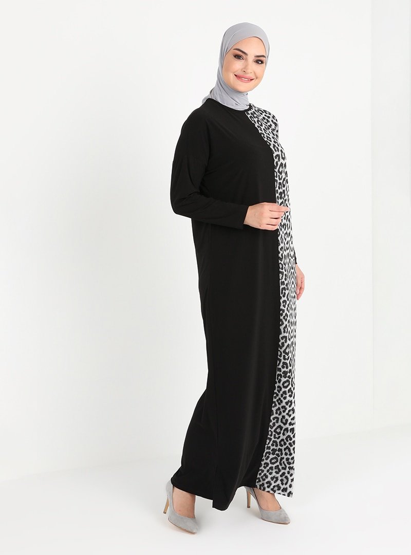 Tavin Siyah Gümüş Leopar Desenli Elbise