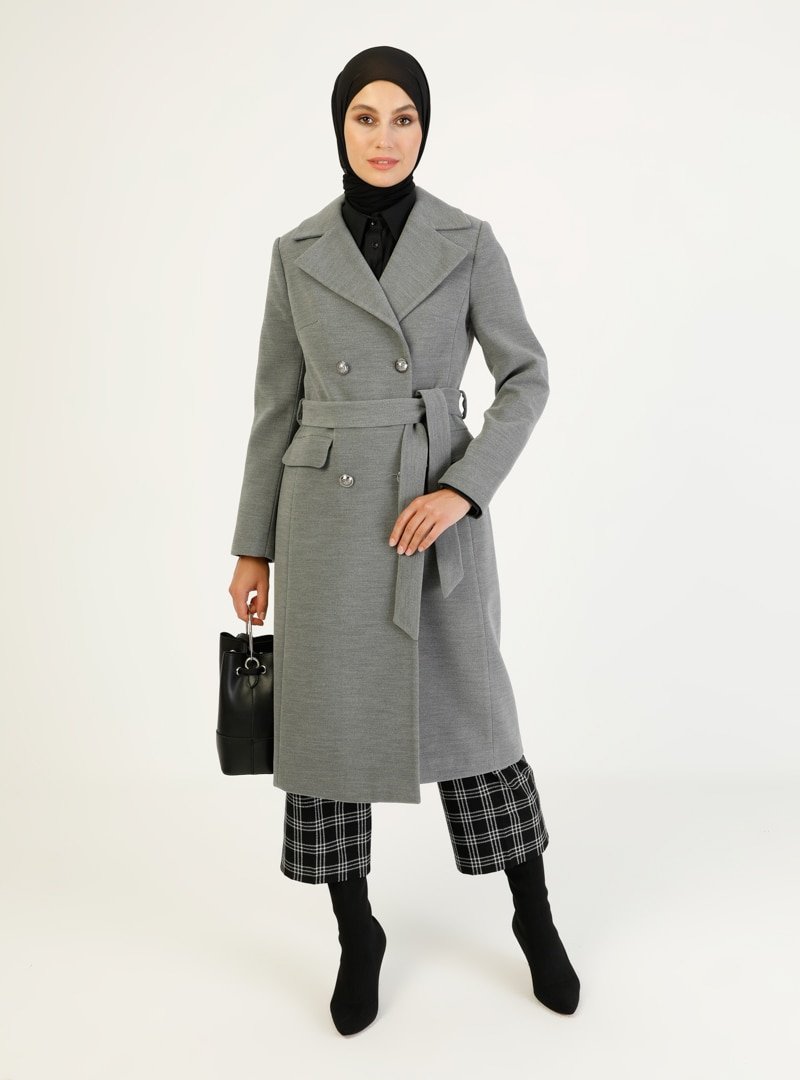 Concept By Olcay Gri Düğme Detaylı Kaban