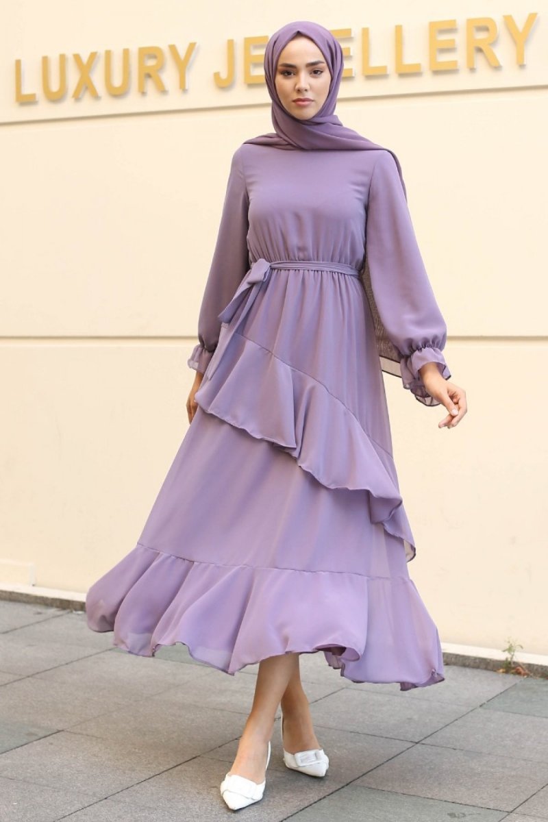 GİZCE Mor Antona Şifon Elbise