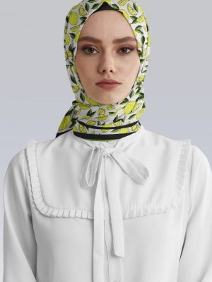 Modabutik Sarı Limon Desenli Saten Eşarp