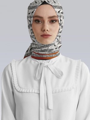 Modabutik Siyah African Desenli Saten Eşarp