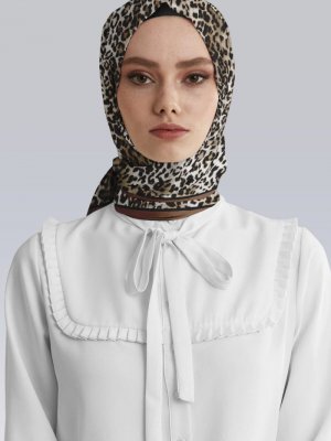 Modabutik Kahve Leopar Desenli Saten Eşarp