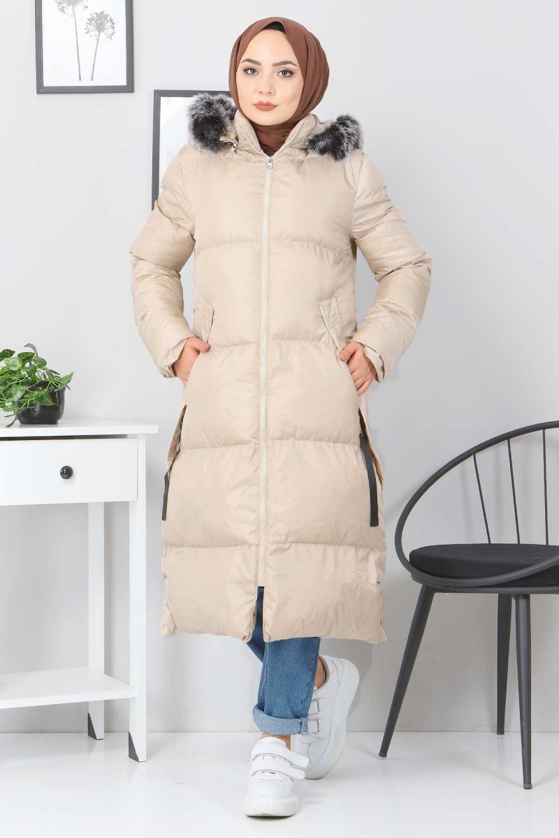 Tesettür Dünyası Cepli Şişme Mont Bej
