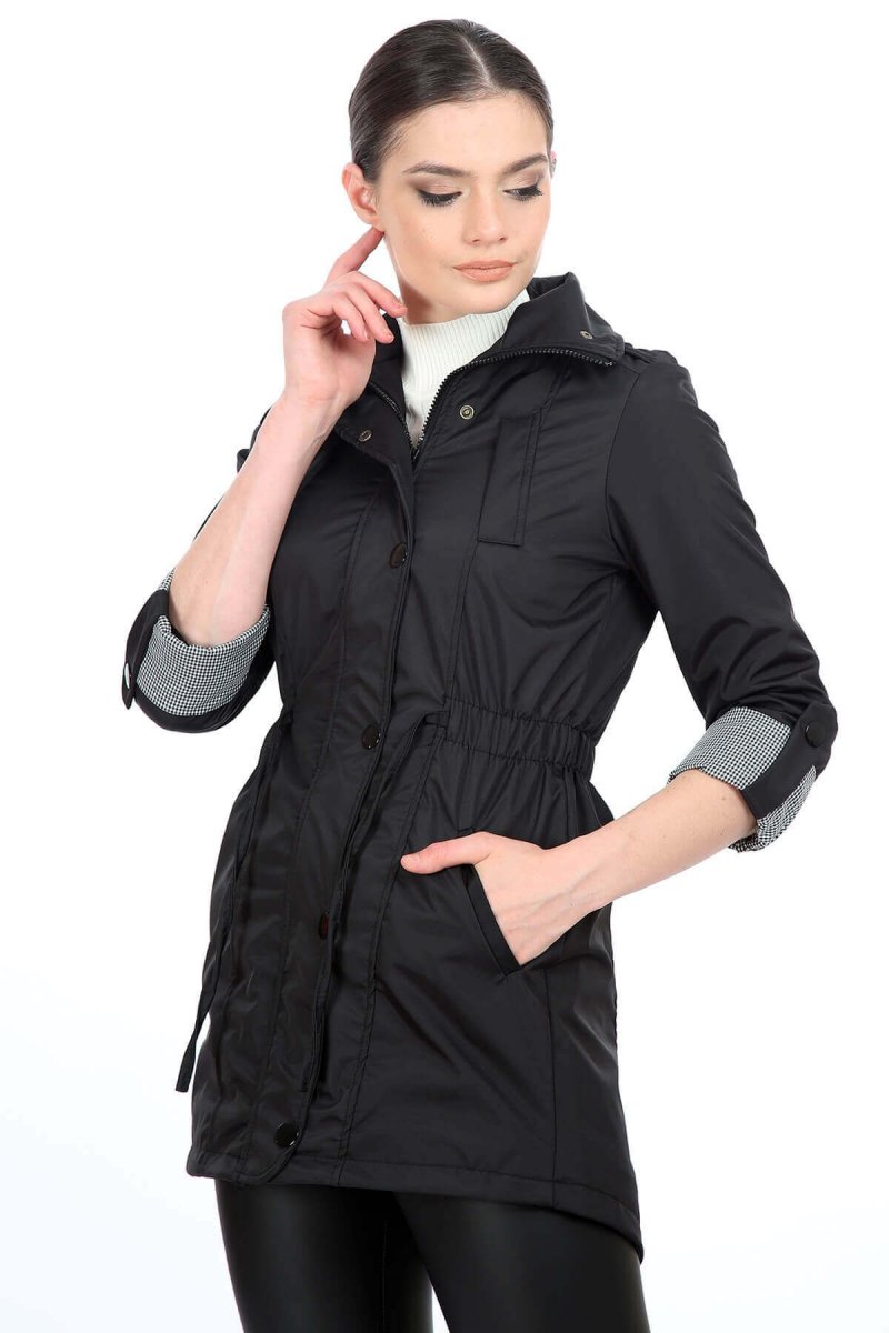 MOSSTA Bel Lastikli Trençkot Siyah
