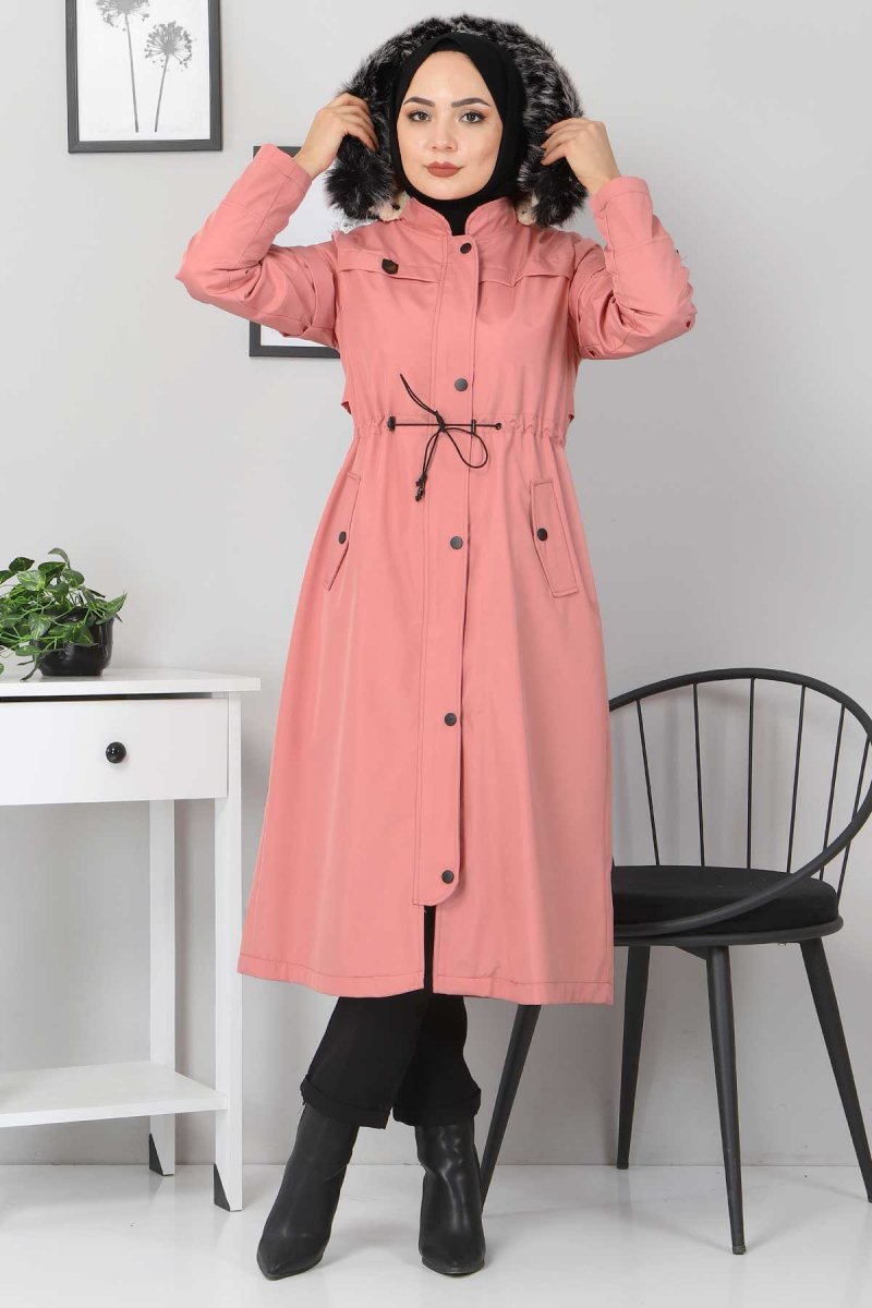 Tesettür Dünyası İçi Kürklü Mont Pembe