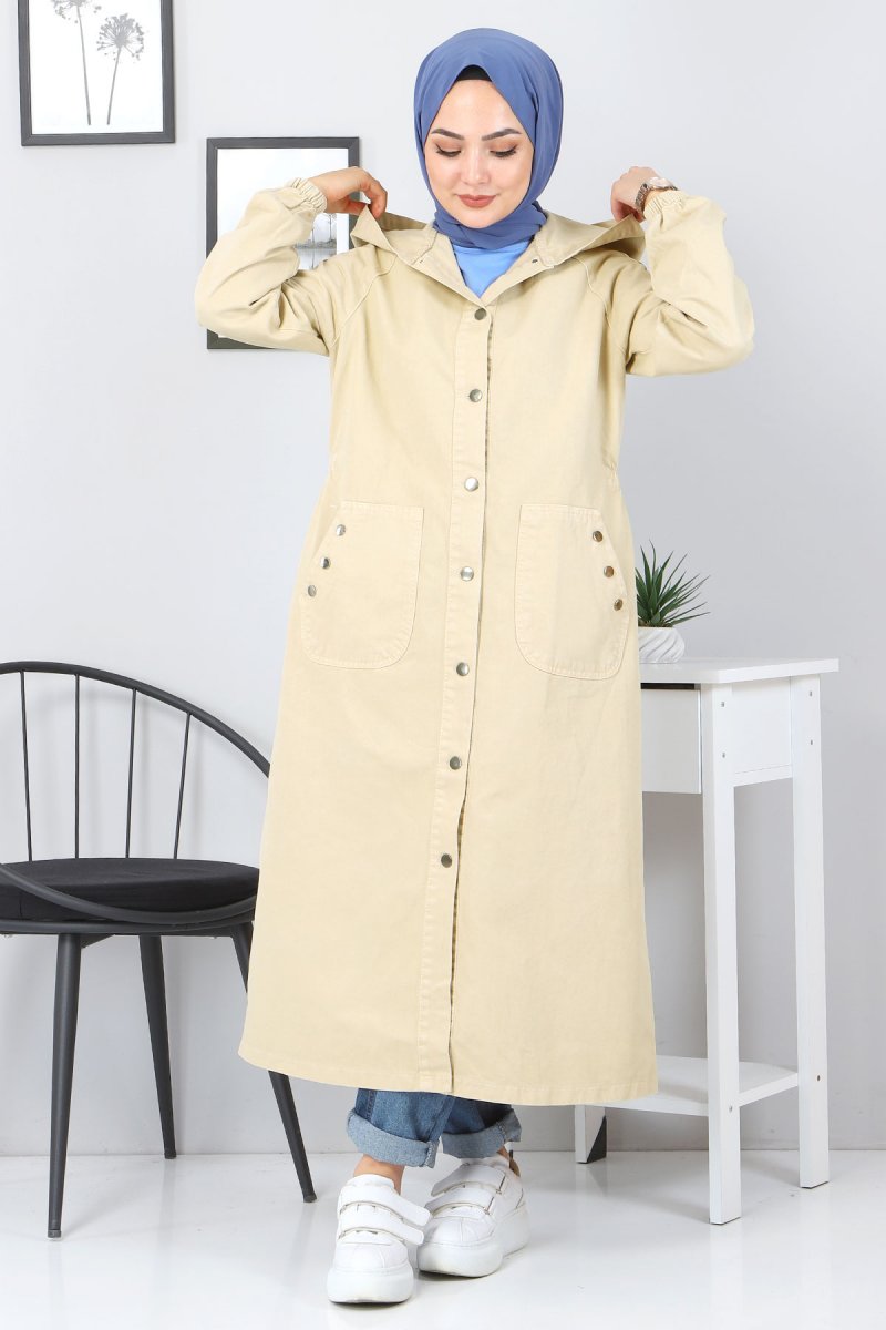 Tesettür Dünyası Bej Kolları Çıt Detaylı Kot Kap
