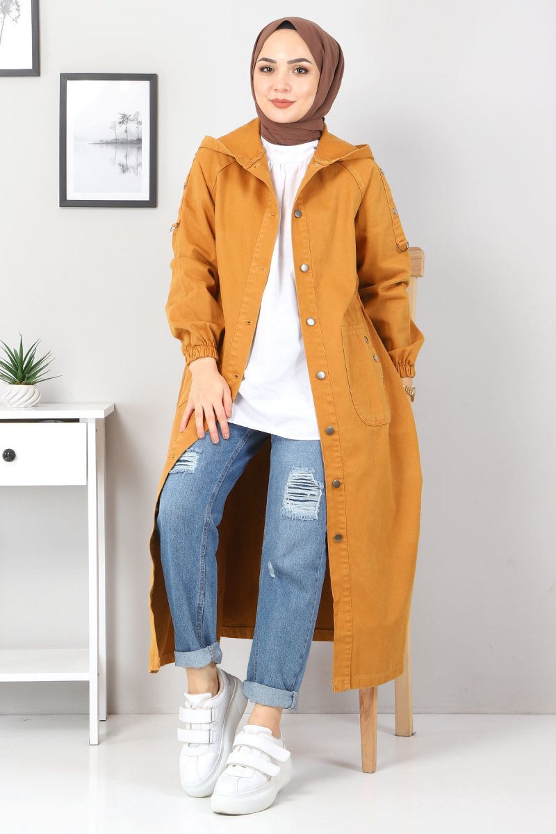 Tesettür Dünyası Taba Kolları Çıt Detaylı Kot Kap