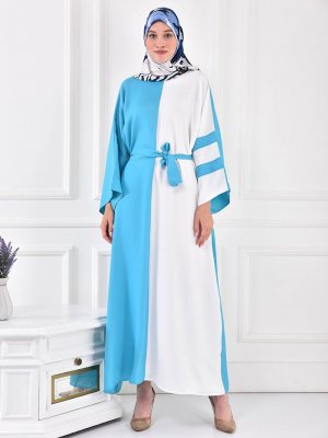 Filizzade Turkuaz Ekru Kuşaklı Salaş Ferace