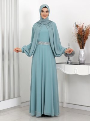 Piennar Mint Yeşili Esra Taşlı Abiye Elbise