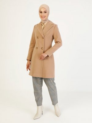 Concept By Olcay Camel Düğme Detaylı Kaban