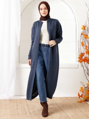 İnşirah İndigo Kuşaklı Triko Hırka