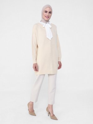 Refka Krem Yakası Bağlamalı Triko Tunik