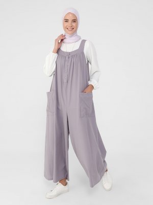 Benin Lavanta Kalın Askılı Düğme Ve Cep Detaylı Salaş Tulum