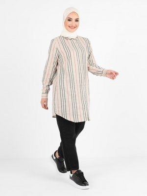 Tavin Ekru Doğal Kumaşlı Çizgili Tunik