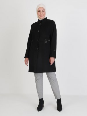 Olcay Siyah Çıtçıt Düğmeli Kaban