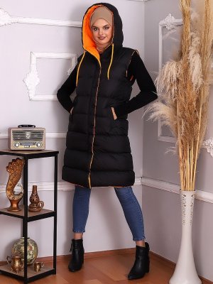 Muzze Fosforlu Turuncu Astarlı Siyah Şişme Yelek